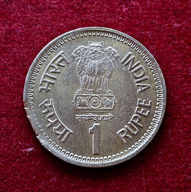 1 Rupee 1991 Rajiv Gandhi Straight Clip Error Coin