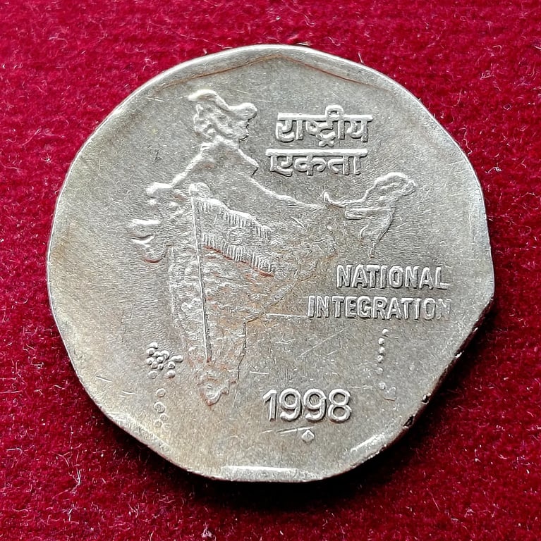 2 Rupees 1998 Straight Clip Error Coin (Mumbai Mint)
