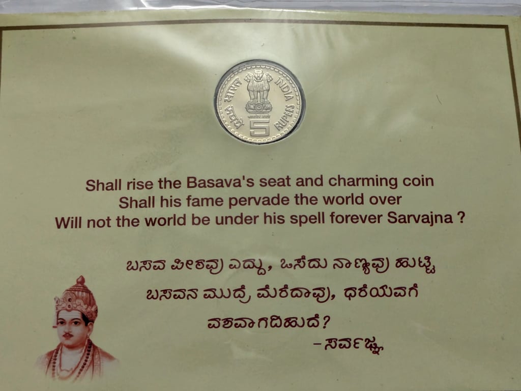 5 RS MAHATMA BASAVESHWARA PROOF COIN MUMBAI MINT