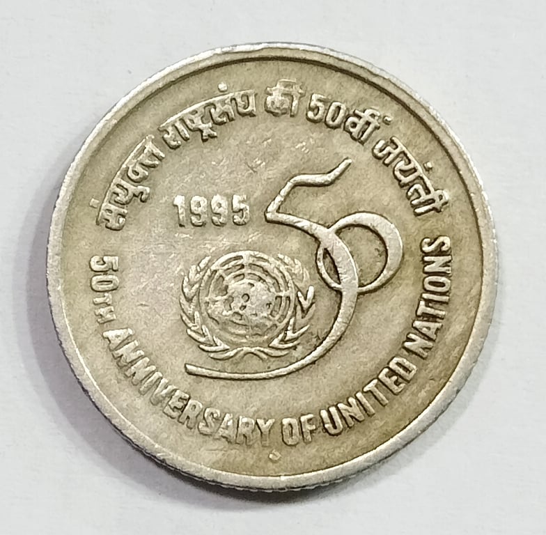 5 RUPEE COMMEMORATIVE ISSUE  50TH ANNIVERSARY OF UNITED NATION 1995