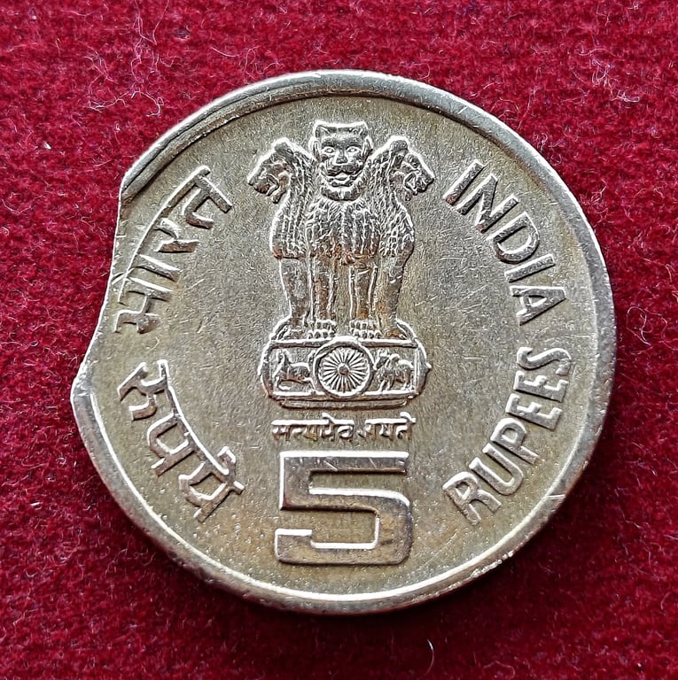 5 Rupees ILO 1994 Curved Clip Error Commemorative Coin