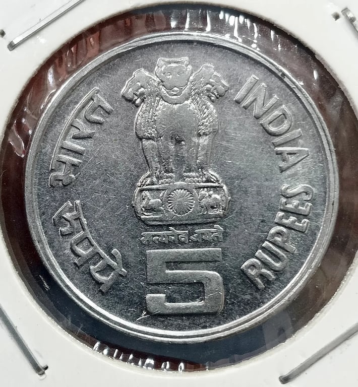 5 RUPEE MAHATMA BASAVESHWAR FSS MULE BOMBAY MINT