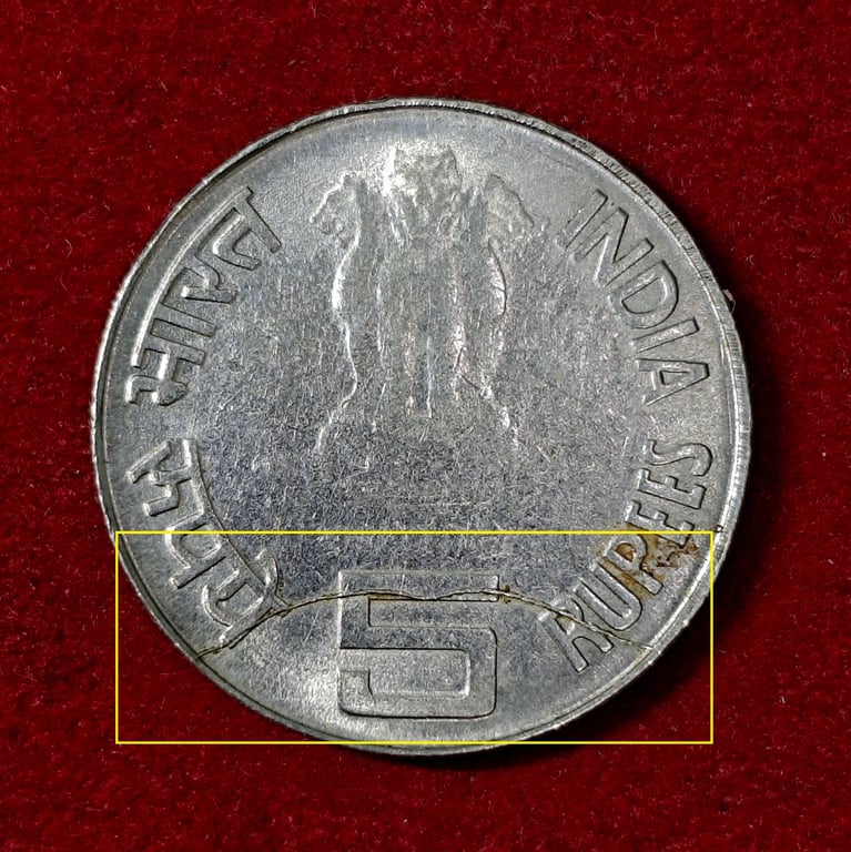 5 Rupees 2005 Dandi March Die Crack Error Coin (Stainless steel)