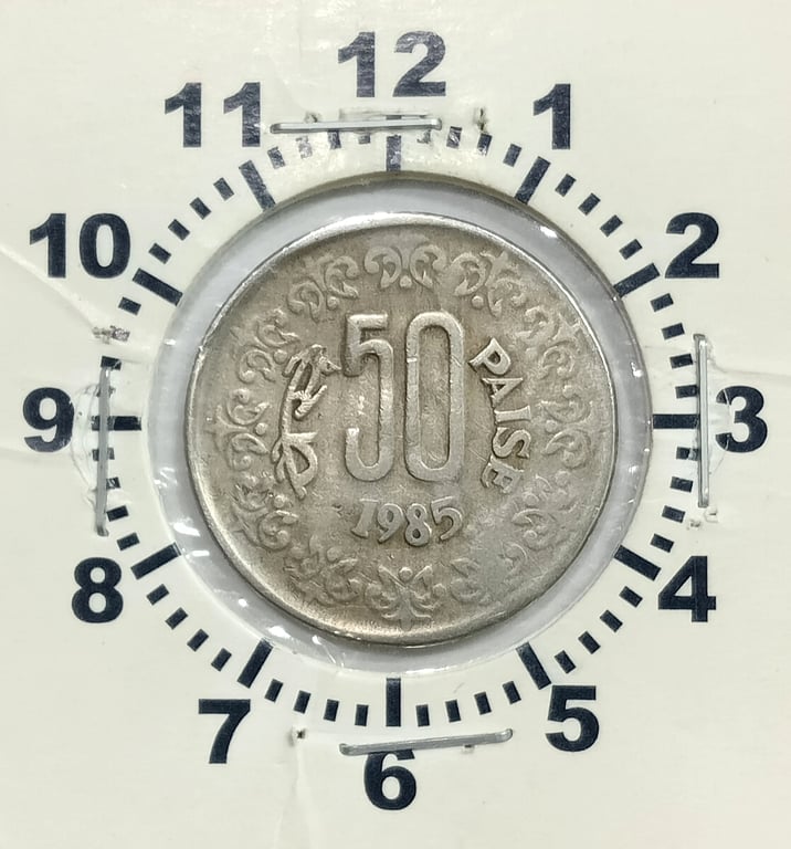 50 Paisa 1985 Calcutta Mint Rotation Error