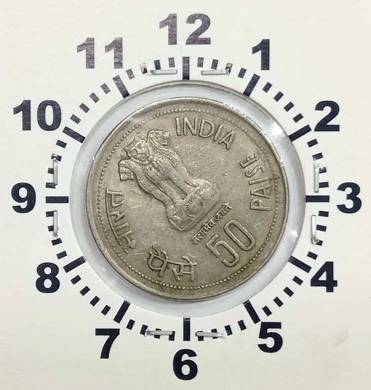 50 PAISA INDIRA GANDHI CULCUTTA MINT ROTATION ERROR COIN