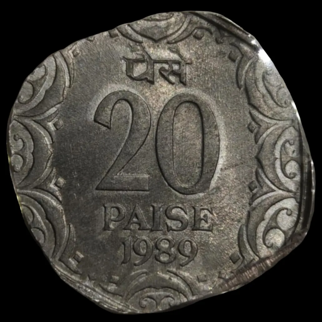 EXTREMELY RARE 20 PAISE COIN WRONG PLANCHET, STRUCK ON 5 PAISE'S PLANCHET WITH COUNTER BROCKAGE.