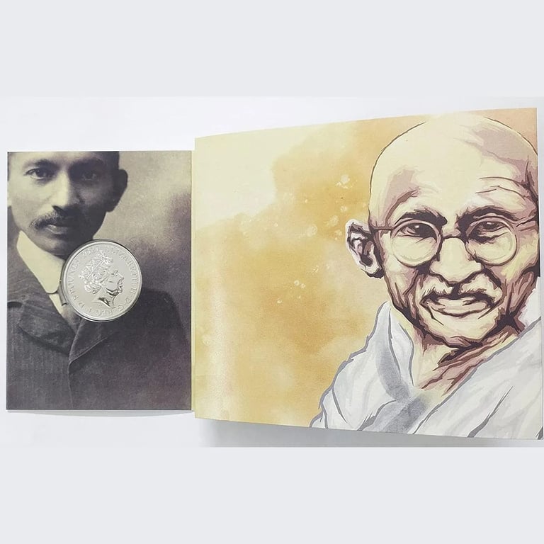 Mahatma Gandhi Commemorative Coin with Royal Mint Original Folder Slogan 2021 for Collection