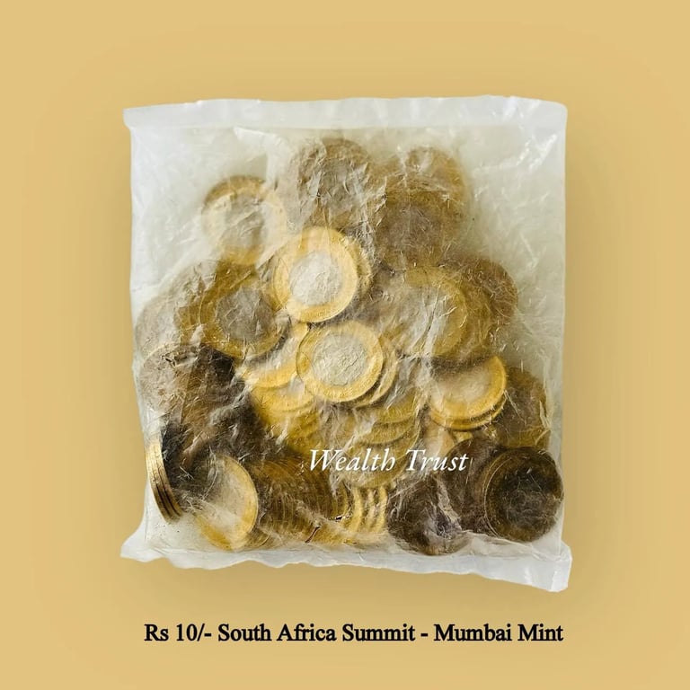 Rs 10/- SOUTH AFRICA Issue Republic India RBI 100 Coin Seal Pouch Mumbai Mint Unique and Rare