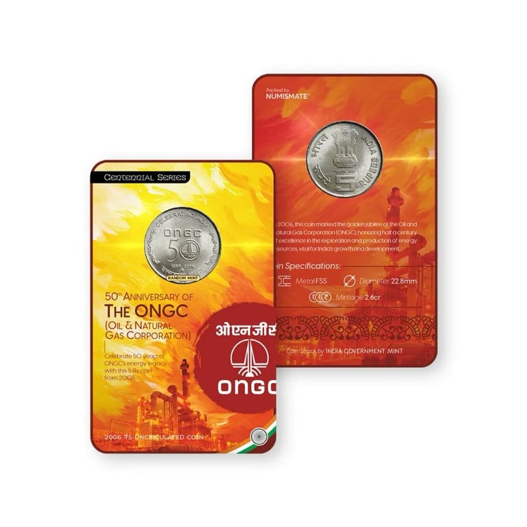 Rs 5 50th ANNIVERSARY OFTHE ONGC Commemorative Coin Card