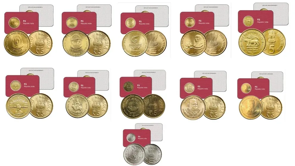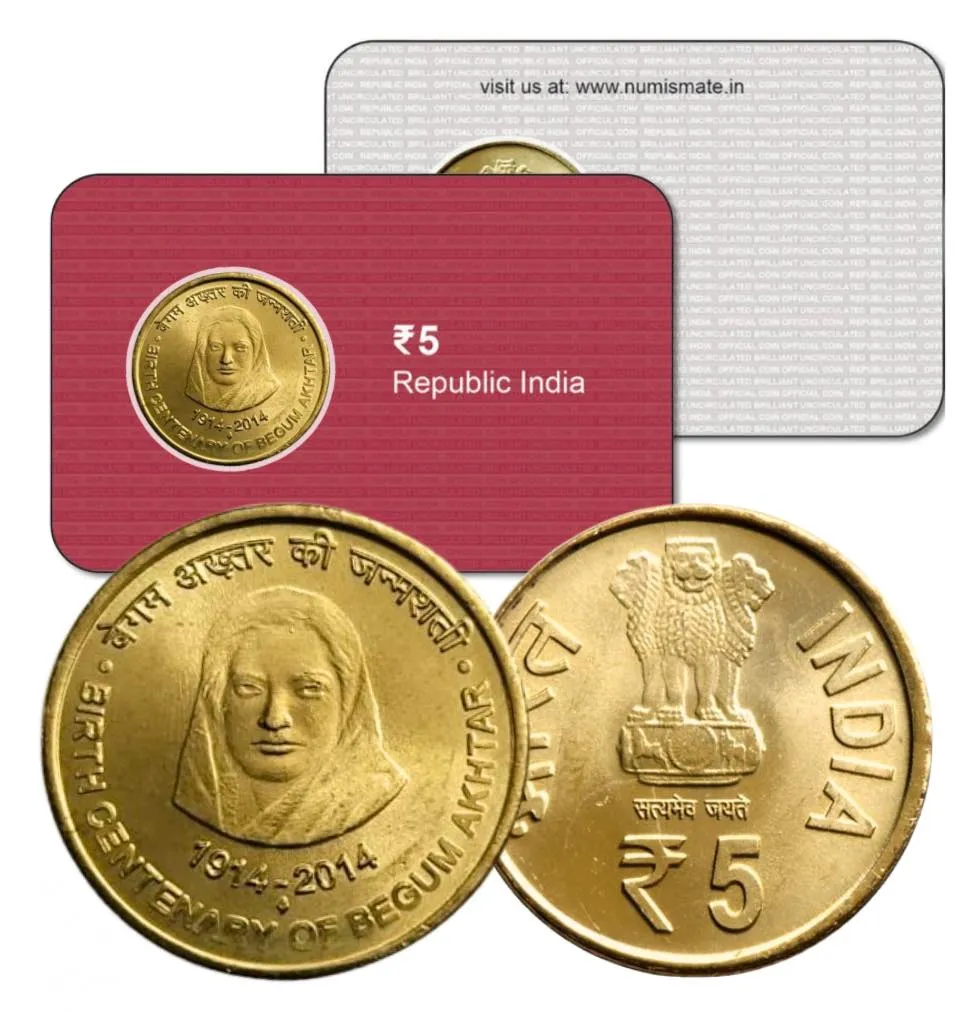 Packed in NUMISMATE’s cost-effective blister, Issued to commemorate coins. The obverse features the Lion Capital of Ashoka with “भारत INDIA” and the denomination ₹5.