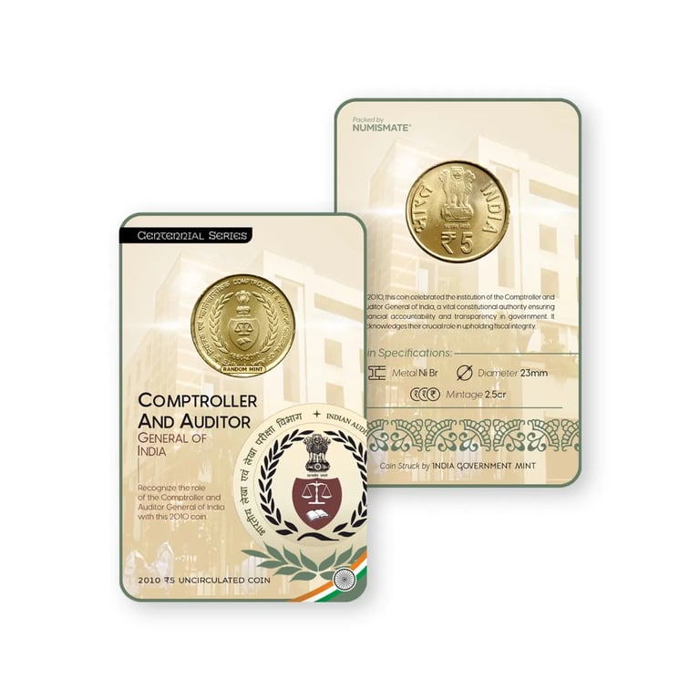 Rs 5 COMPTROLLER AND AUDITOR GENERAL OF INDIA Commemorative Coin Card