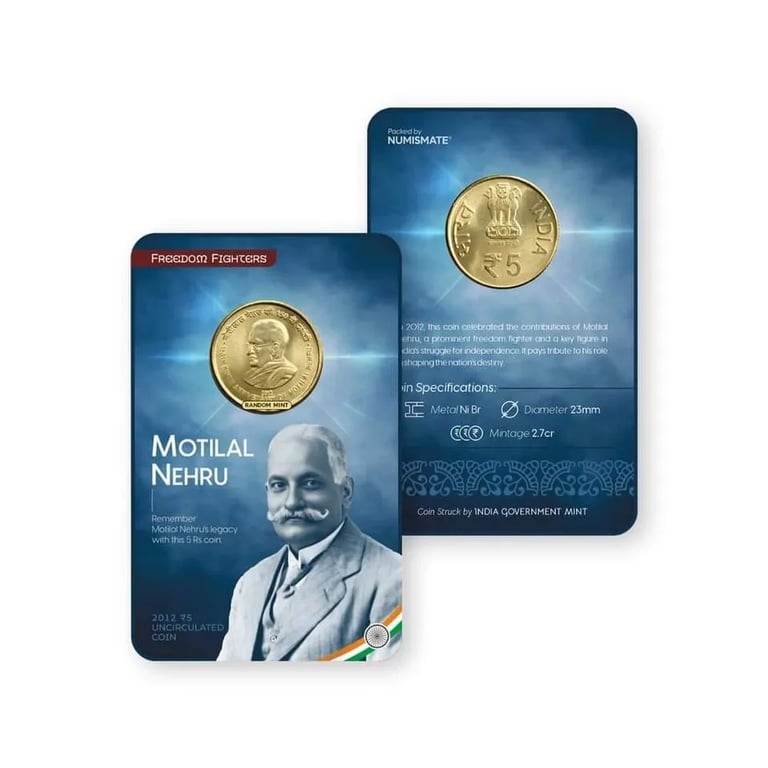 Rs 5 MOTILAL NEHRU Commemorative Coin Card