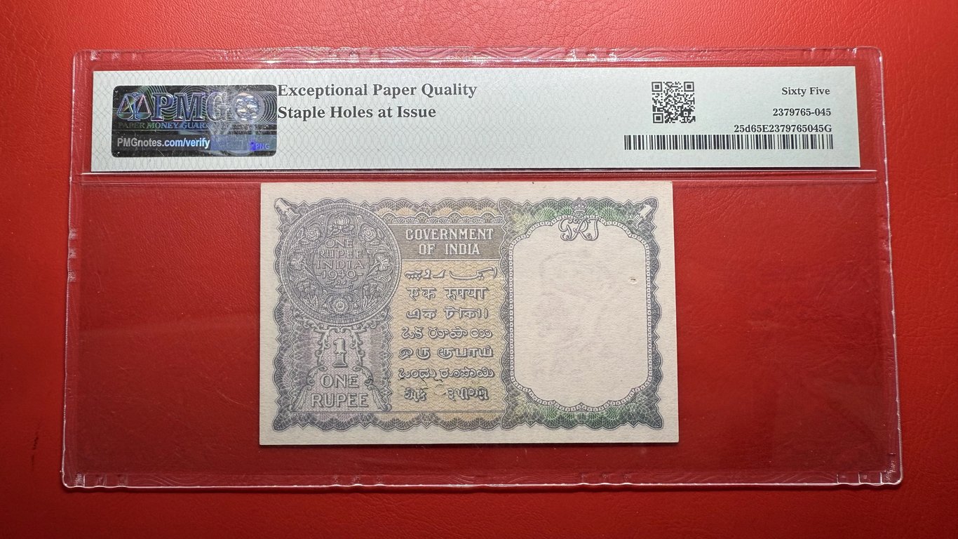 1 Rs British India CE Jones Pmg 65 Grade Rare Without Pin & Thread Hole Note