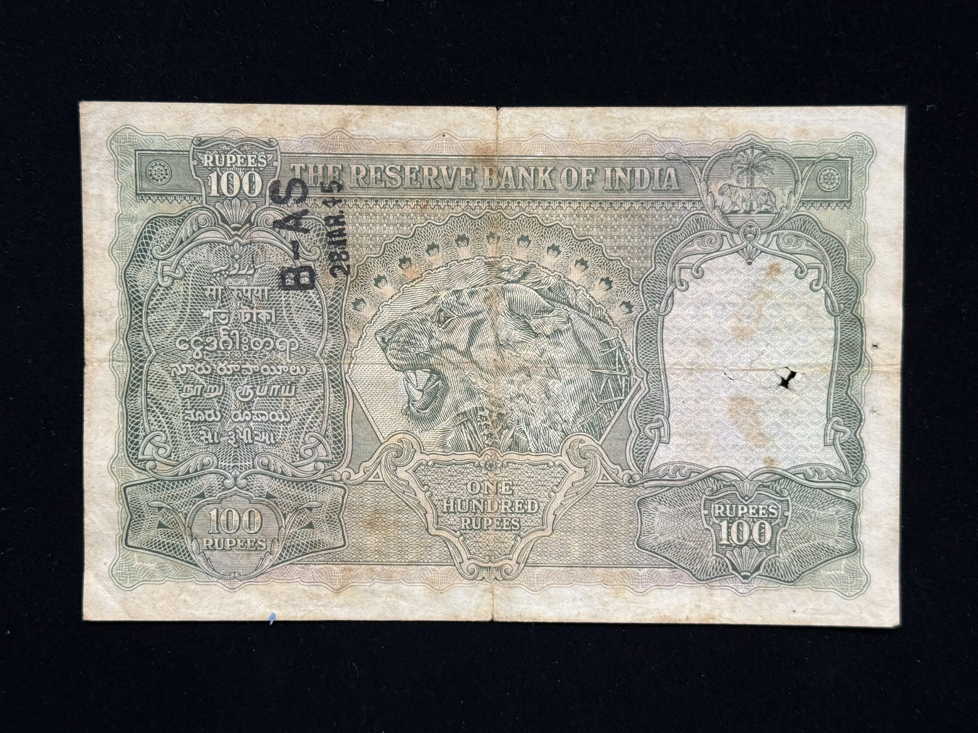 British India, 1938 Rupees 100 Banknote, King George VI (KG VI), Prefix (A47), Sign. J.B. Taylor, Prefix A,(Madras Circle), RARE & SCARE, (A47 874767)