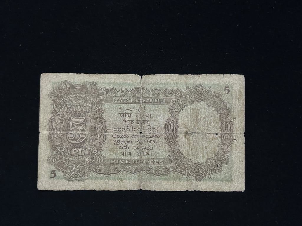 British India, 1938 Rupees 5 Banknote, King George VI (KG VI), Sign. J.B. Taylor, Used Condition