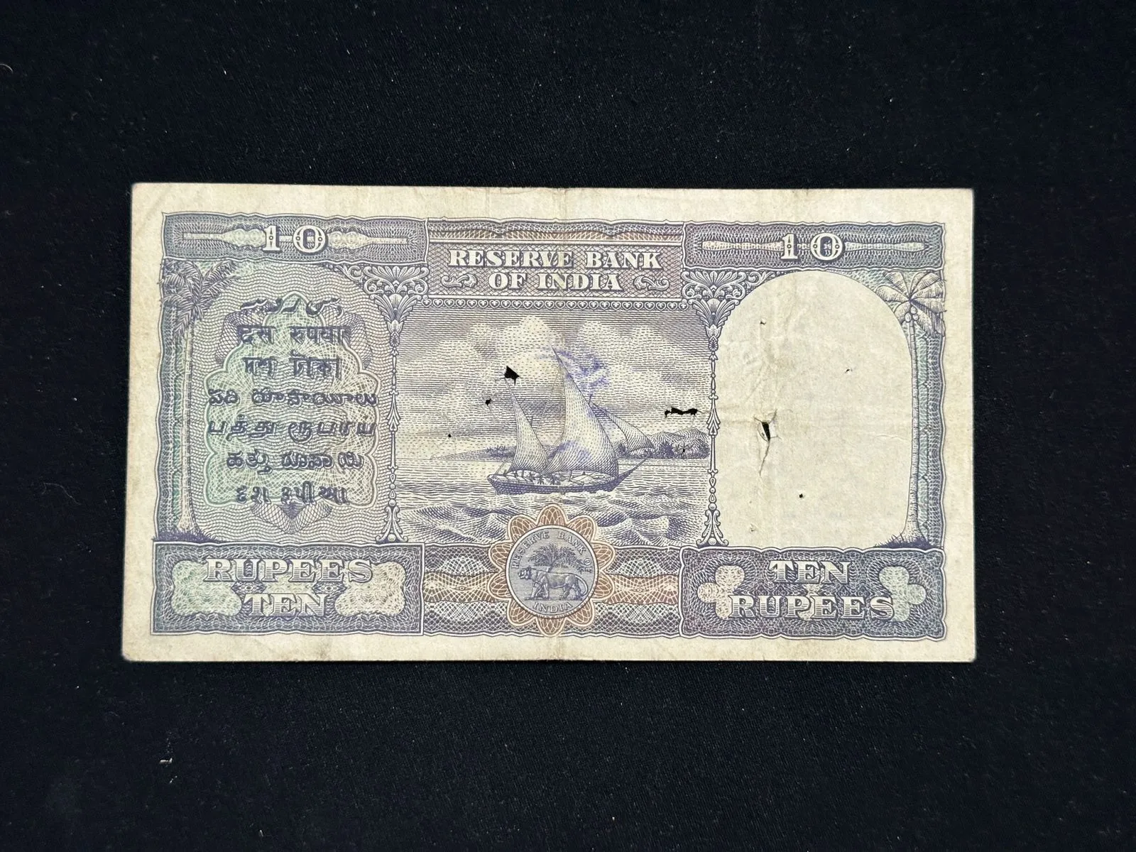 British India, 1944 Rupees 10 Banknote, King George VI (KGVI) Front Face, Sign. C. D. Deshmukh, (H22 809807)
