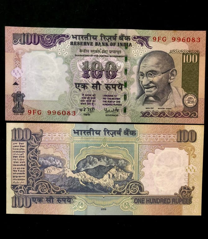 G-65 RS 100/- INDIA BANKNOTE SIGNATURE SERIES Signed by Y.V.REDDY INSET PLAIN 2006 Issue