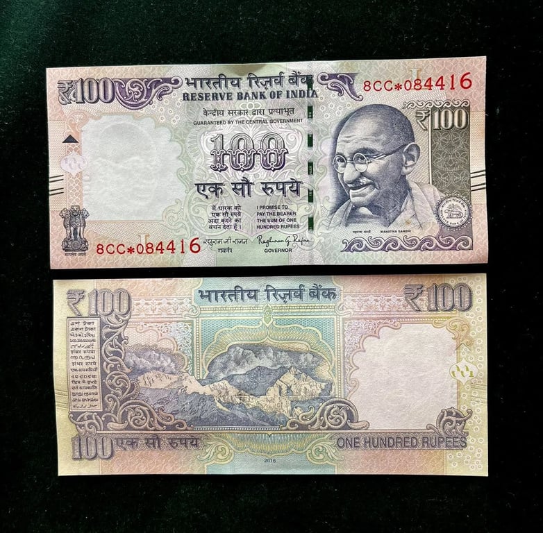 GS 68 RS 100 INDIA BANKNOTES STAR REPLACEMENT SERIES 8CC INSET L 2016 Issue