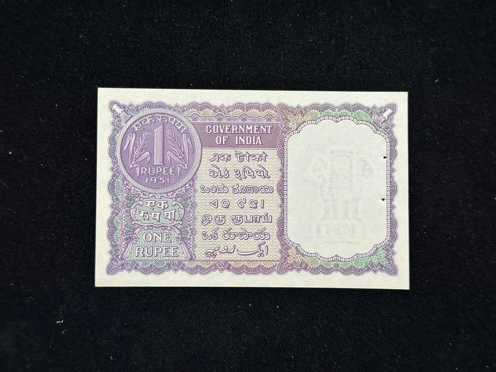 India, 1951 Rupee 1 Banknote, Fancy Mirror Serial Number 277-772, Sign. H.M. Patel, Inset A, UNC, (D66 451154)