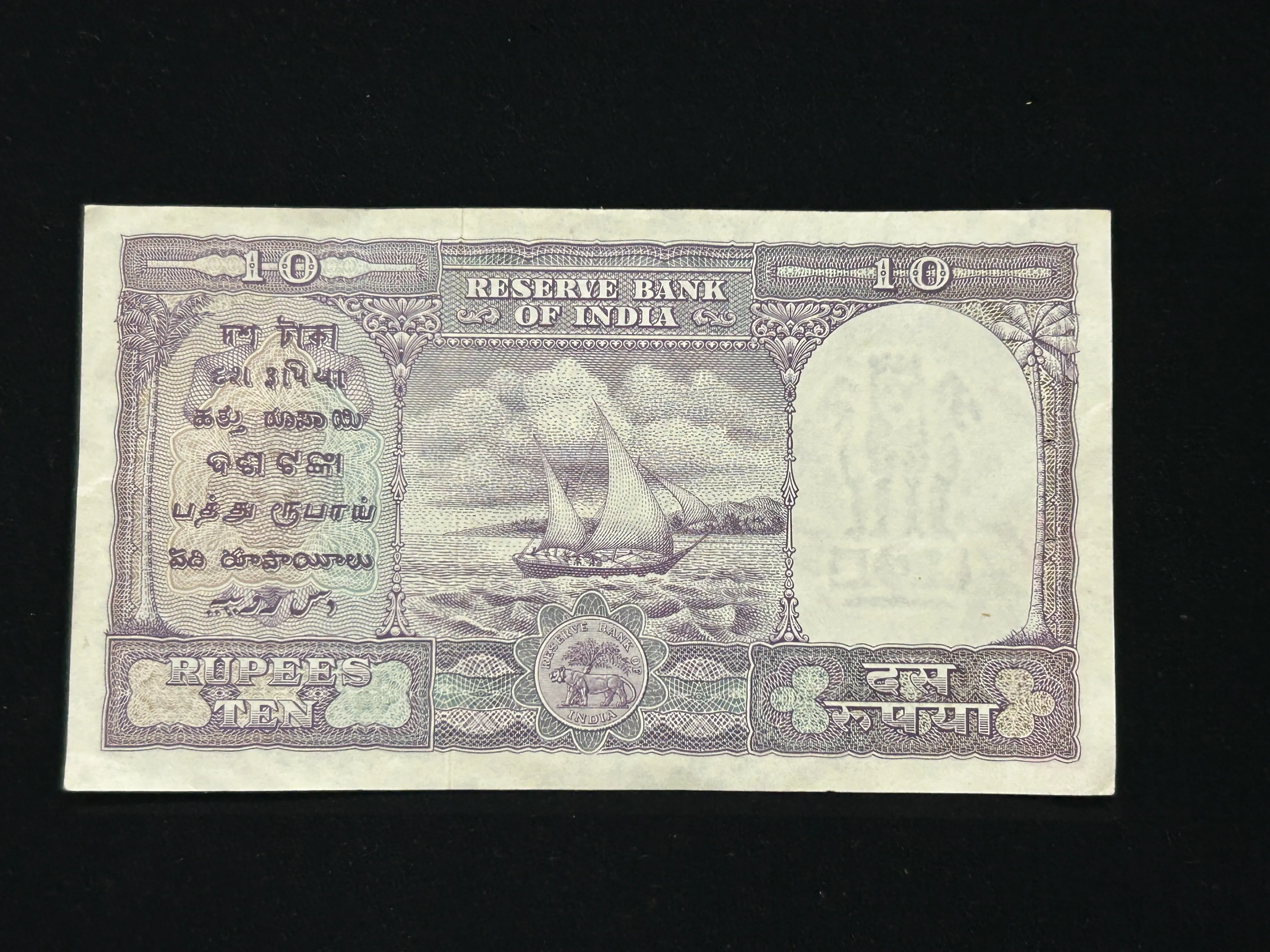 India, 1951 Rupees 10 Banknote, 3rd Issue (Incorrect Hindi), Sign. B. Rama Rau, (D48 559292).