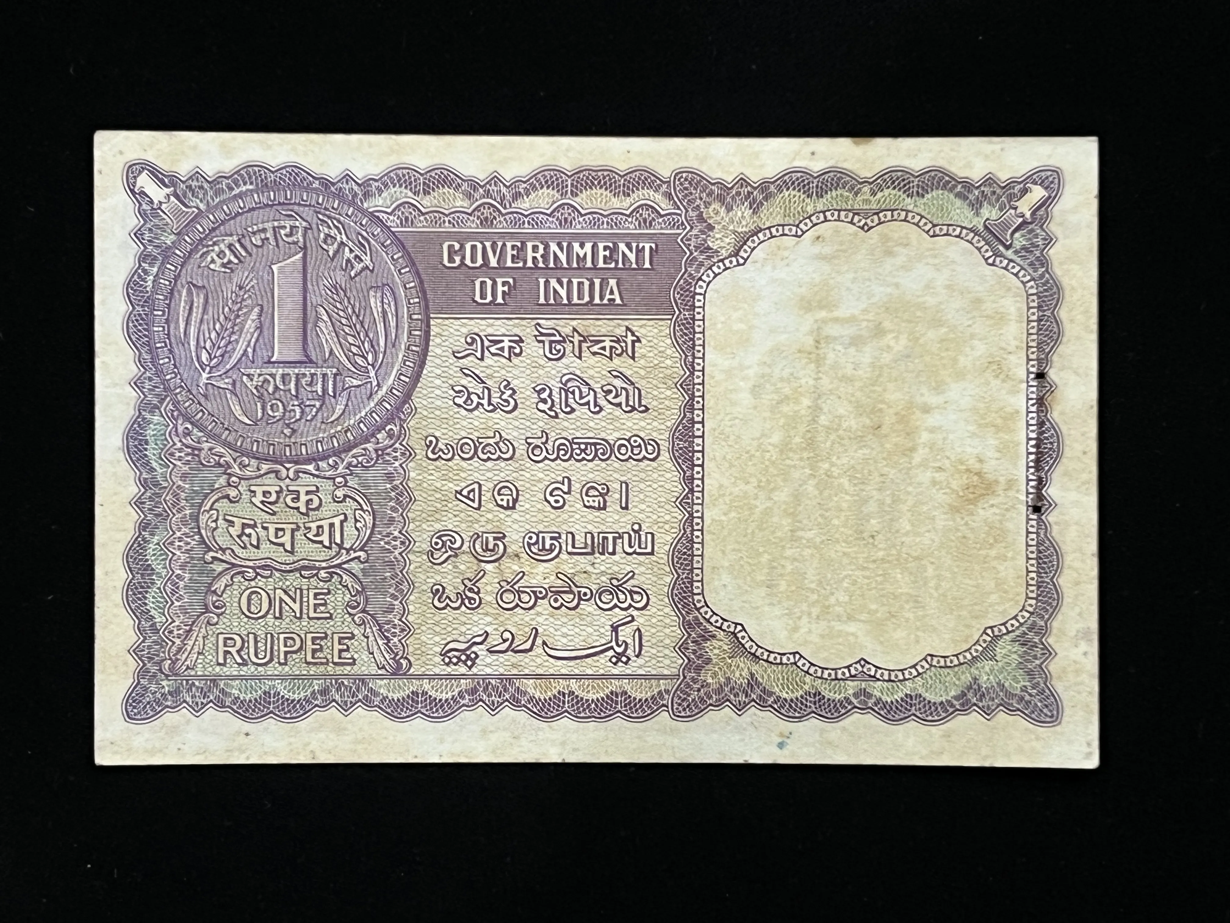 India, 1957 Rupee 1 Banknote, A10, Sign. L.K. Jha, Inset B, UNC, RARE & SCARE, (Y63 725900)