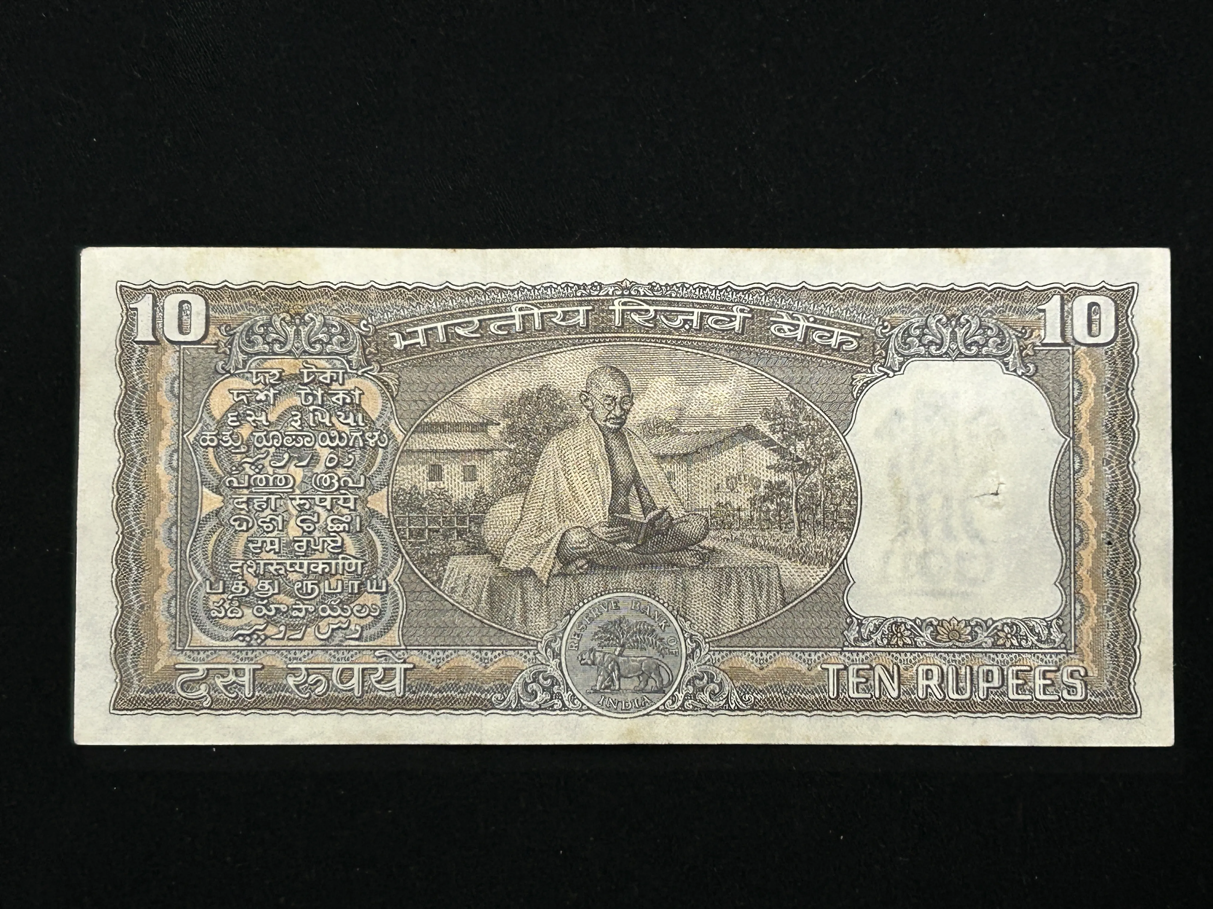 India, 1969 Rupees 10 Banknote, Gandhi Issue (Black Boat Issue) , Sign. L.K. Jha, RARE, (F6 351864)
