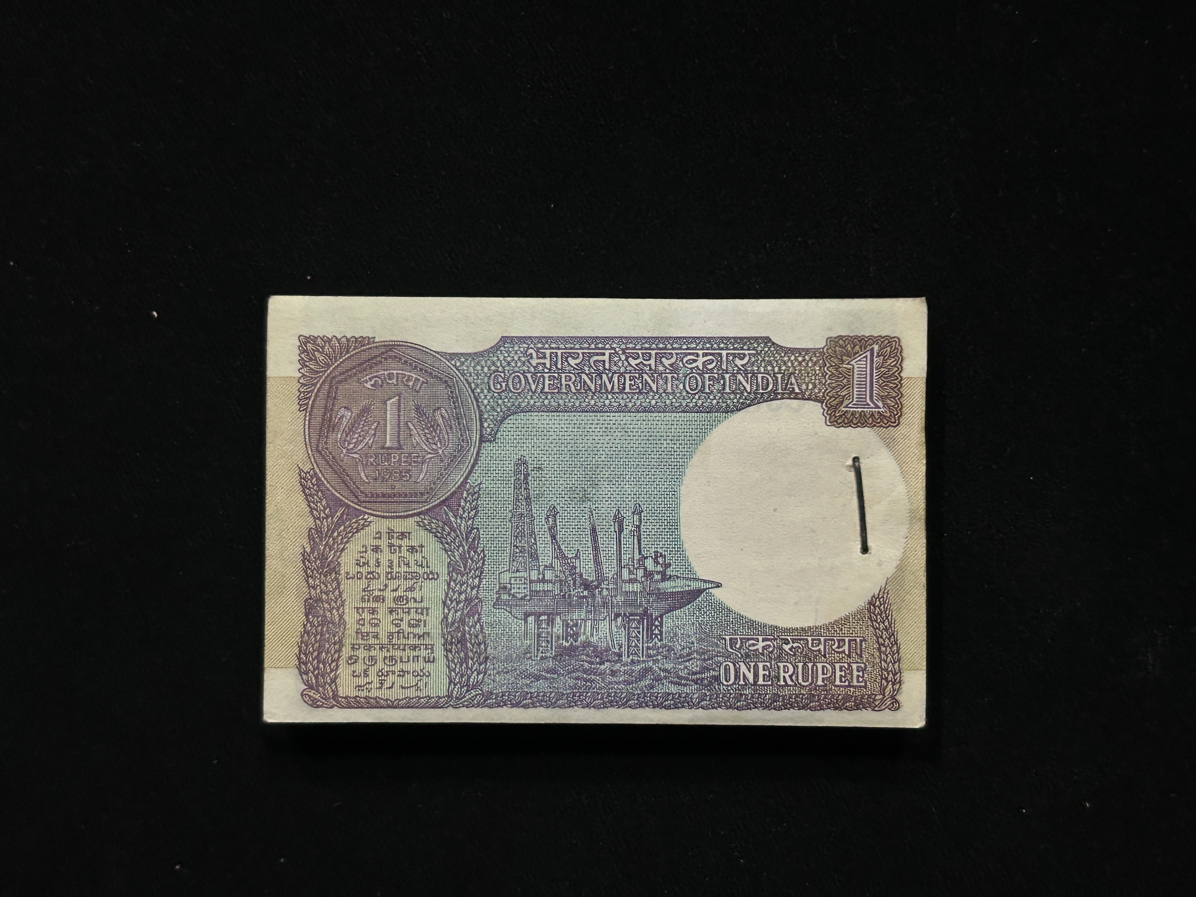 India, 1985 Rupee 1 Complete Serial Bundle of 100 Banknotes, Fancy Serial Number Ending 420 & 444, Sign. S. Venkitaramanan, Inset Plain, UNC
