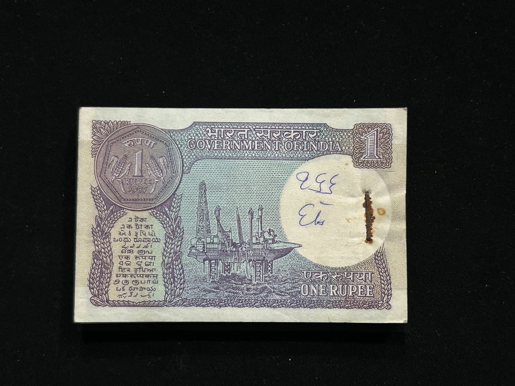 India, 1987 Rupee 1 x 95 Banknotes (Broken Bundle), Holy Fancy Serial Number Ending 541 (SAI), Sign. S. Venkitaramanan, Inset A, UNC