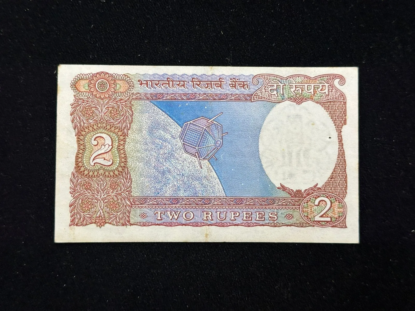India, 1988 Rupees 2 Banknote, Lower Fancy Serial Number 000064, Satellite Issue, Sign. R. N. Malhotra, Inset Plain, (58T 000064).