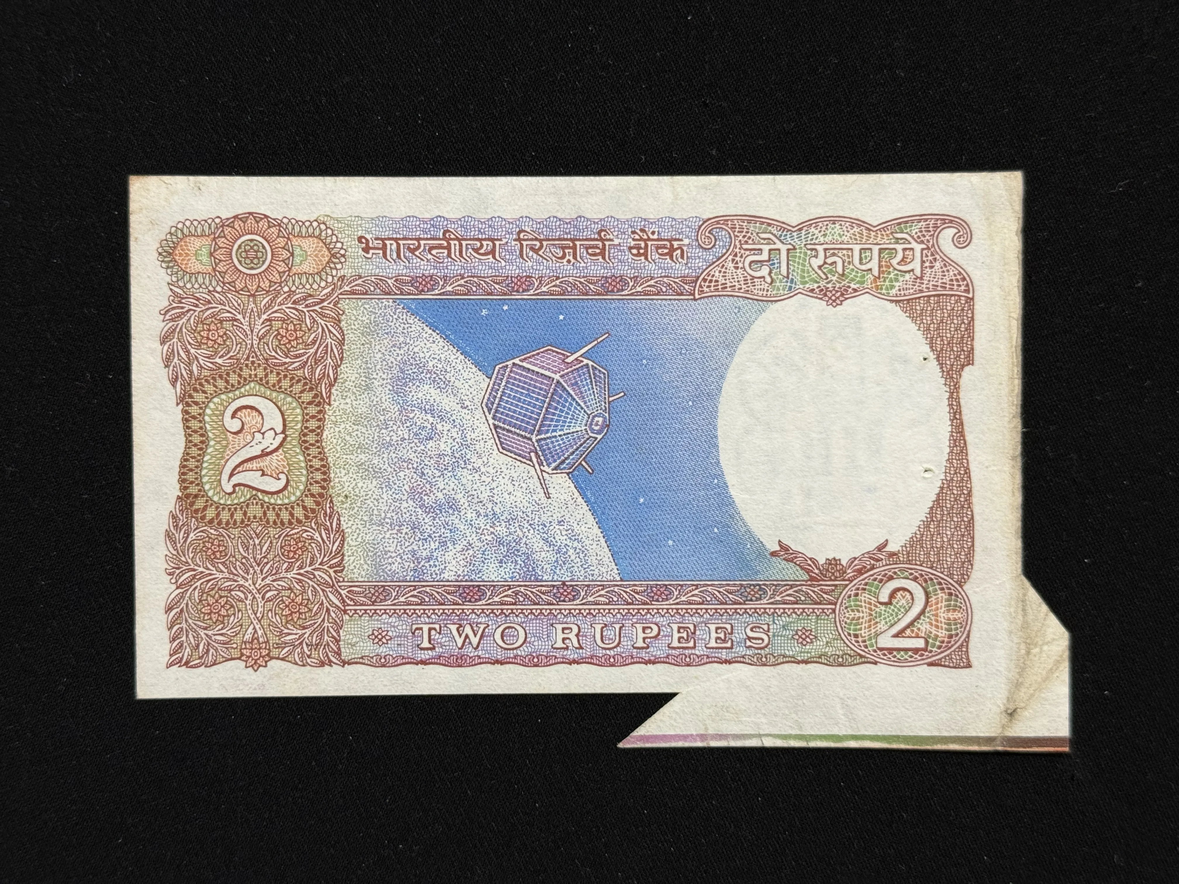 India, 1988 Rupees 2 Banknote, Sheet Fold Cutting Error, Satellite Issue, Sign. R. N. Malhotra, Inset Plain, RARE, UNC, (75M 722392)