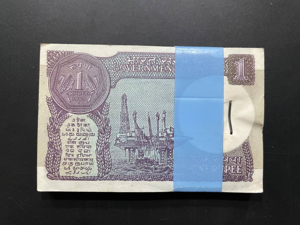 India, 1989 Rupee 1 Complete Serial Bundle of 100 Notes