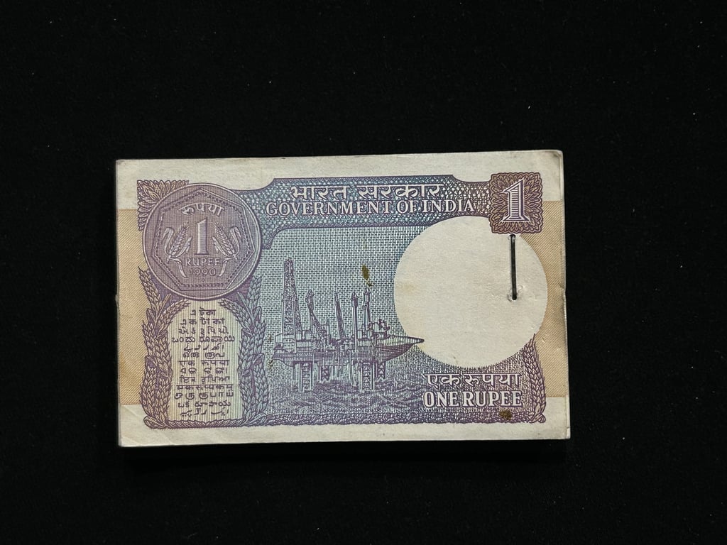 India, 1990 Rupee 1 x 87 Banknotes (Broken Bundle), Fancy Serial Number Ending 916 (Hallmark), Sign. Bimal Jalan, Inset B, UNC
