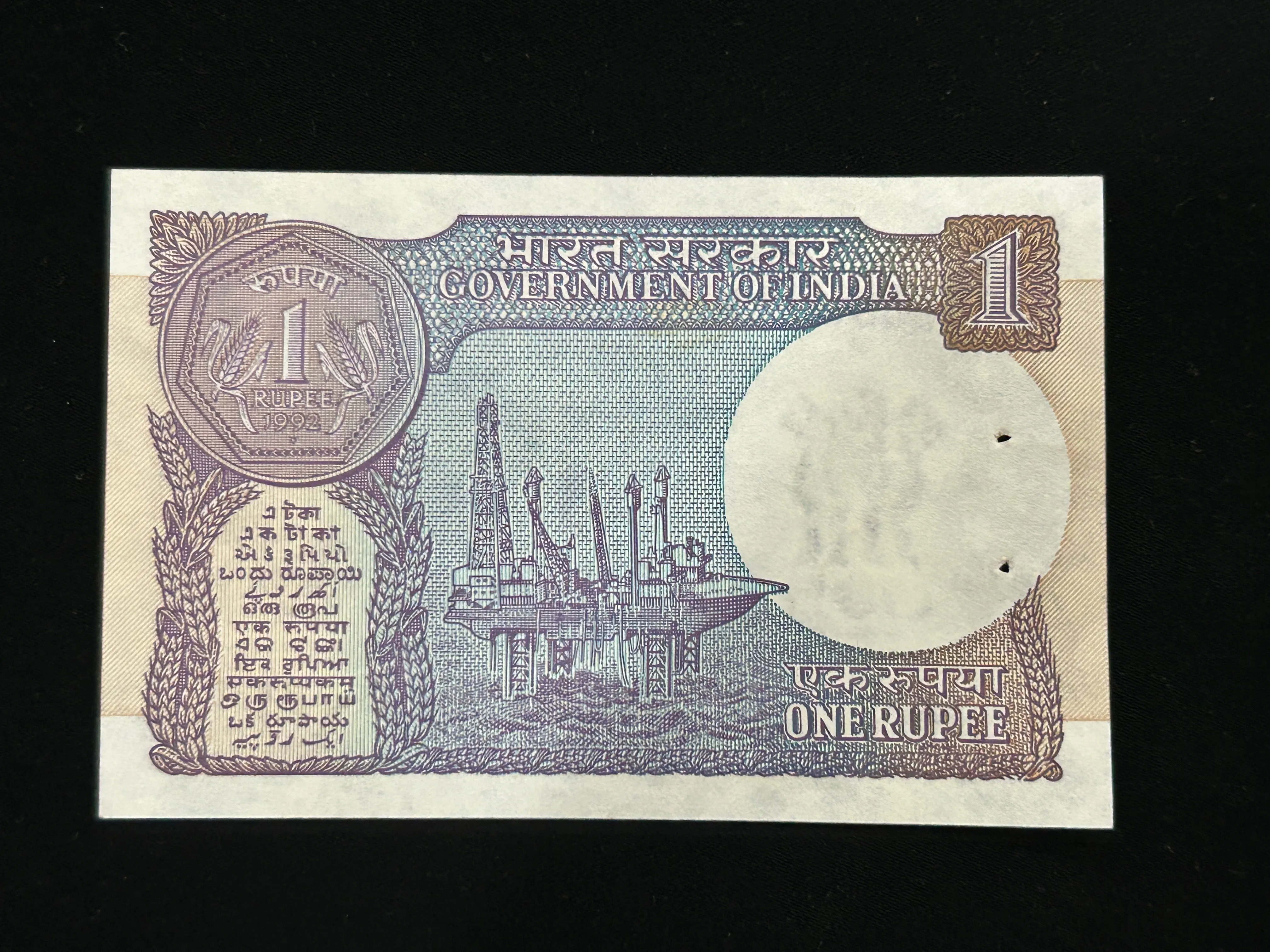 India, 1992 Rupee 1 Banknote, Sign. Montek Singh Ahluwalia, Inset B, UNC, (02N 585434)