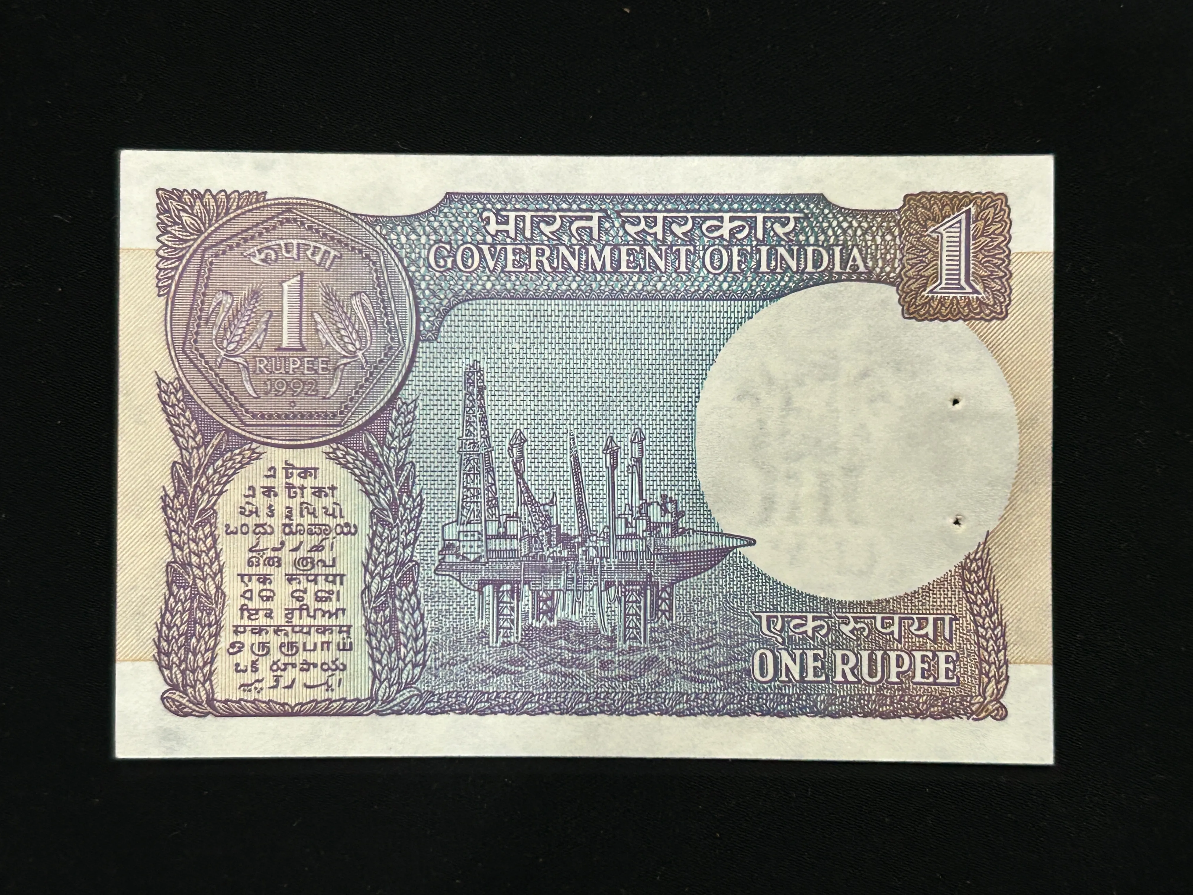 India, 1992 Rupee 1 Banknote, Sign. Montek Singh Ahluwalia, Inset B, UNC, (02N 585436)