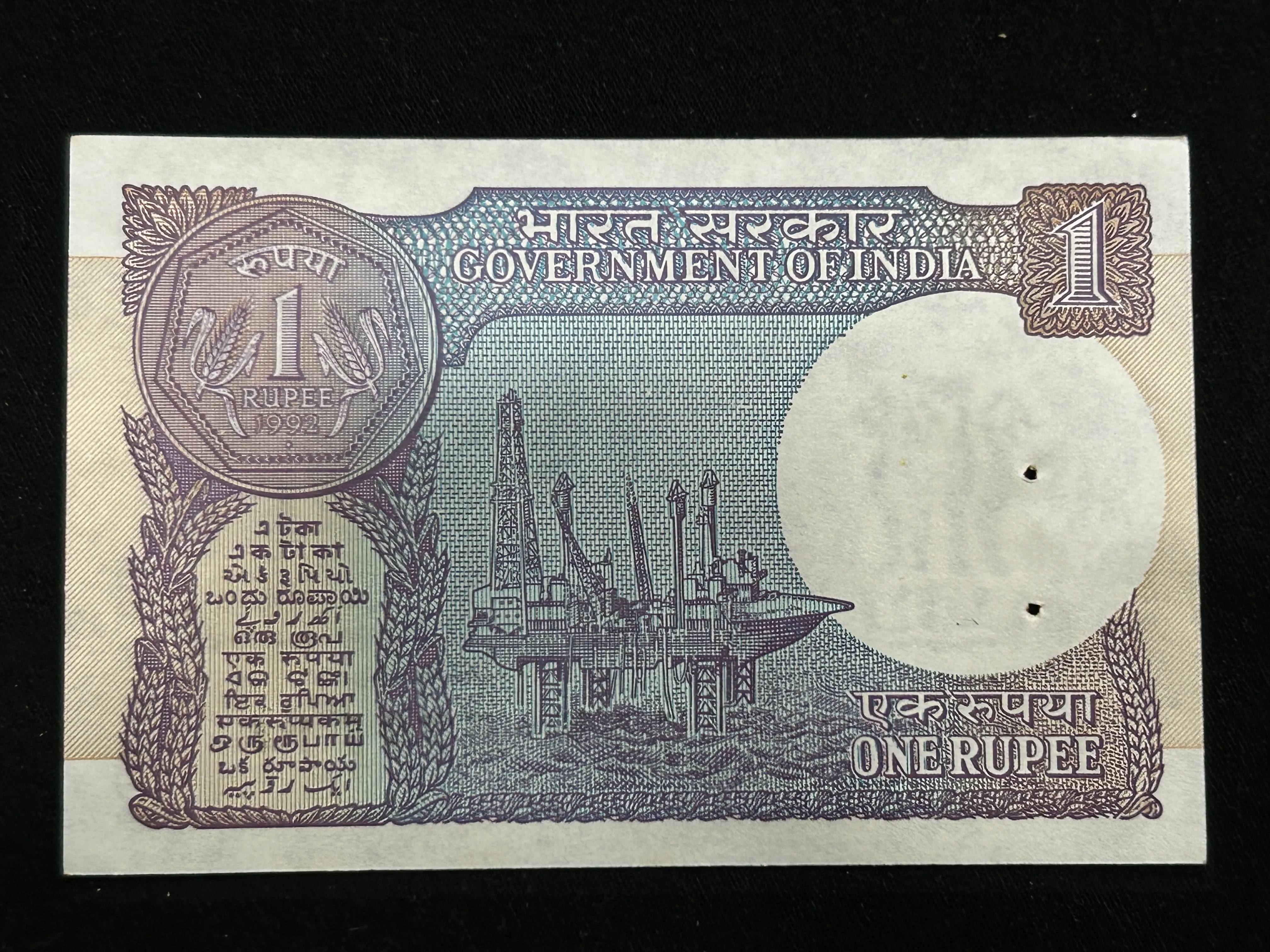 India, 1992 Rupee 1 Banknote, Sign. Montek Singh Ahluwalia, Inset B, UNC, (11N 579111)