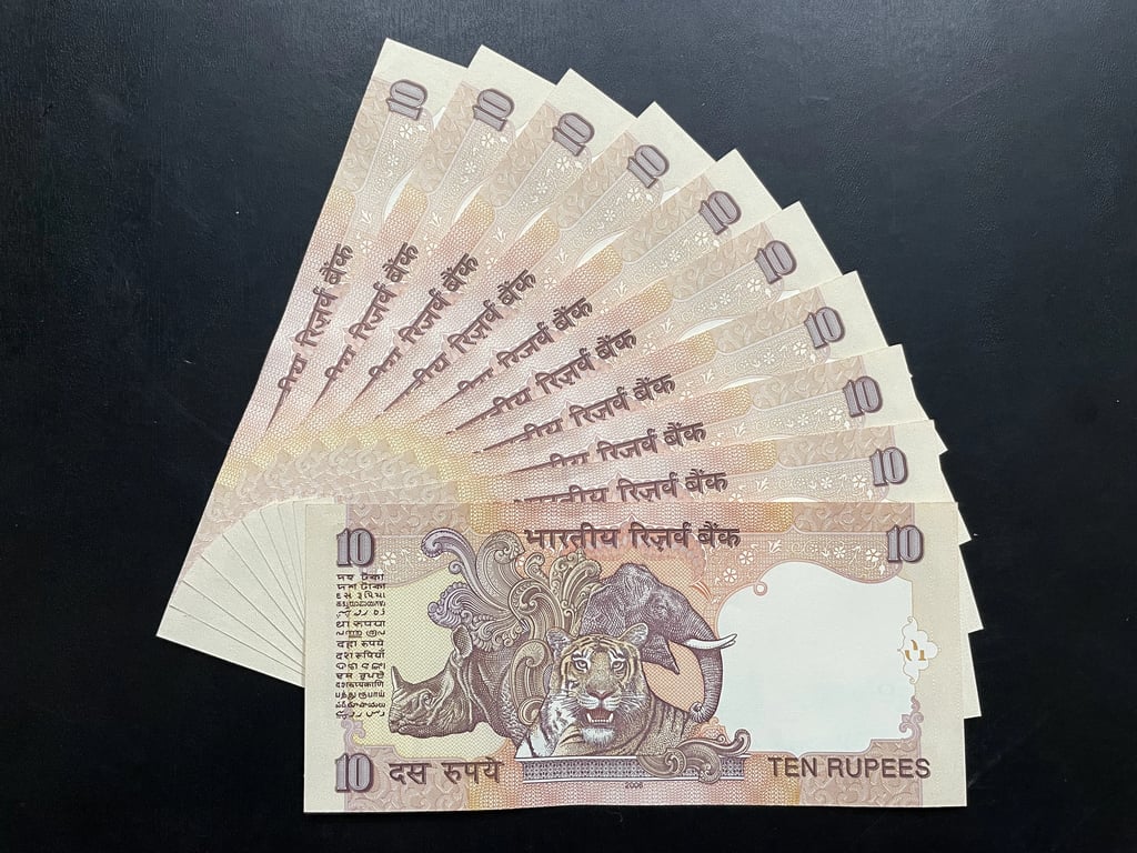 Indian 2006 Rupees 10 Star Series x 10 Consecutive Serial Number Banknotes