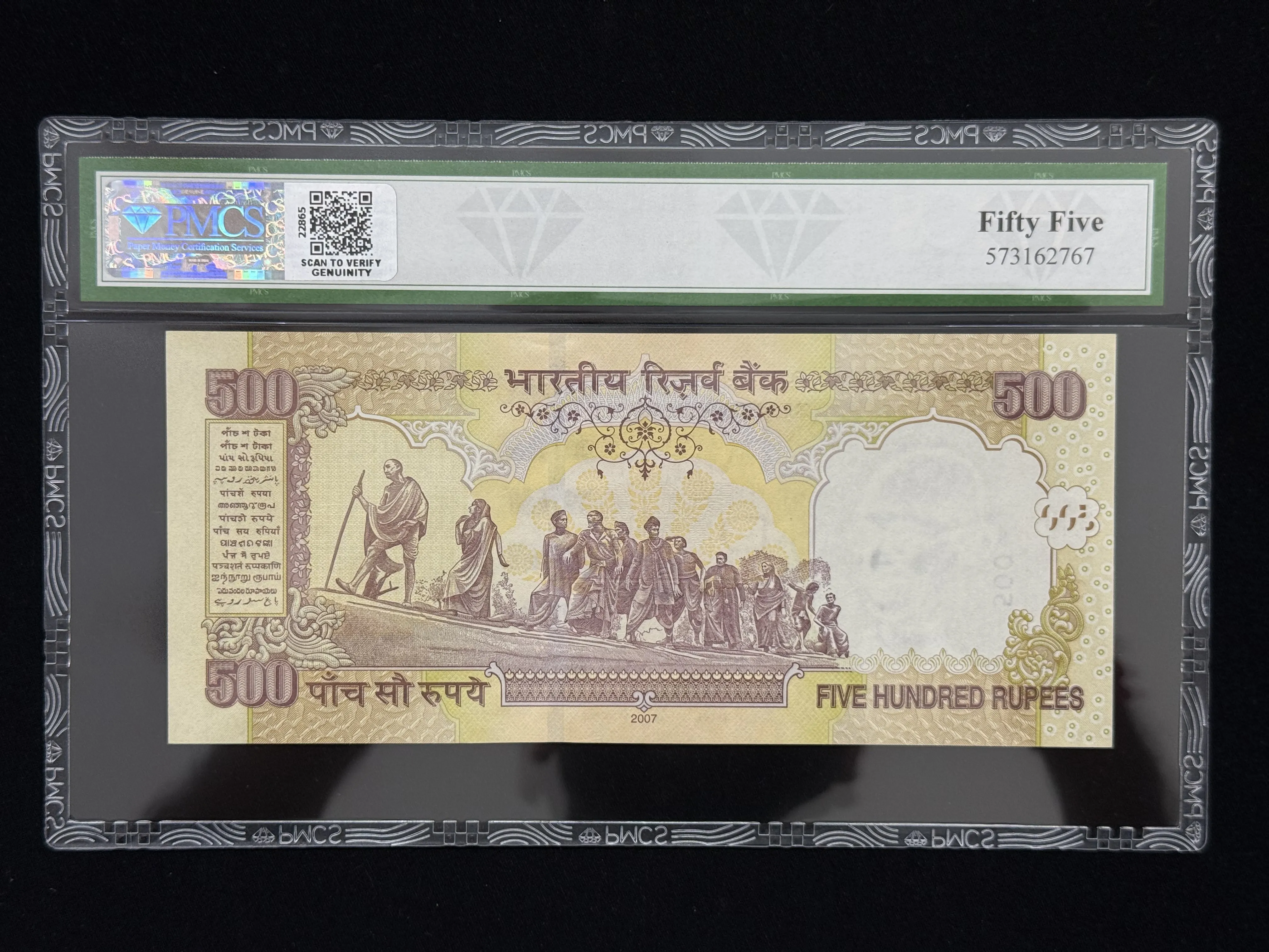 India, 2007 Rupees 500 Banknote, Solid Fancy Serial Number 222222, Sign. Y.V. Reddy, Inset Plain, PMCS Graded 55 AUNC, (4GR 222222)
