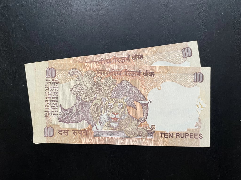 Indian 2011 Rupees 10 x 2 Consecutive Star Serial Number Banknotes