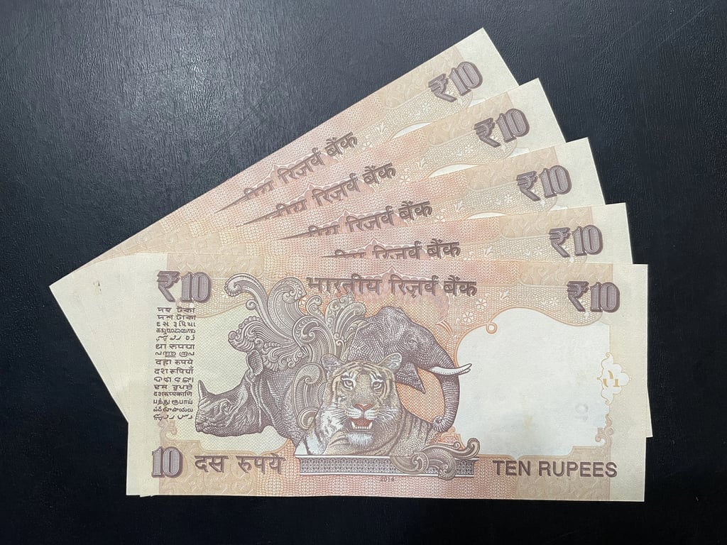 Indian 2014 Rupees 10 Star Series x 5 Consecutive Serial Banknotes, Sign. Raghuram G. Rajan, Inset M, Prefix 01F, UNC