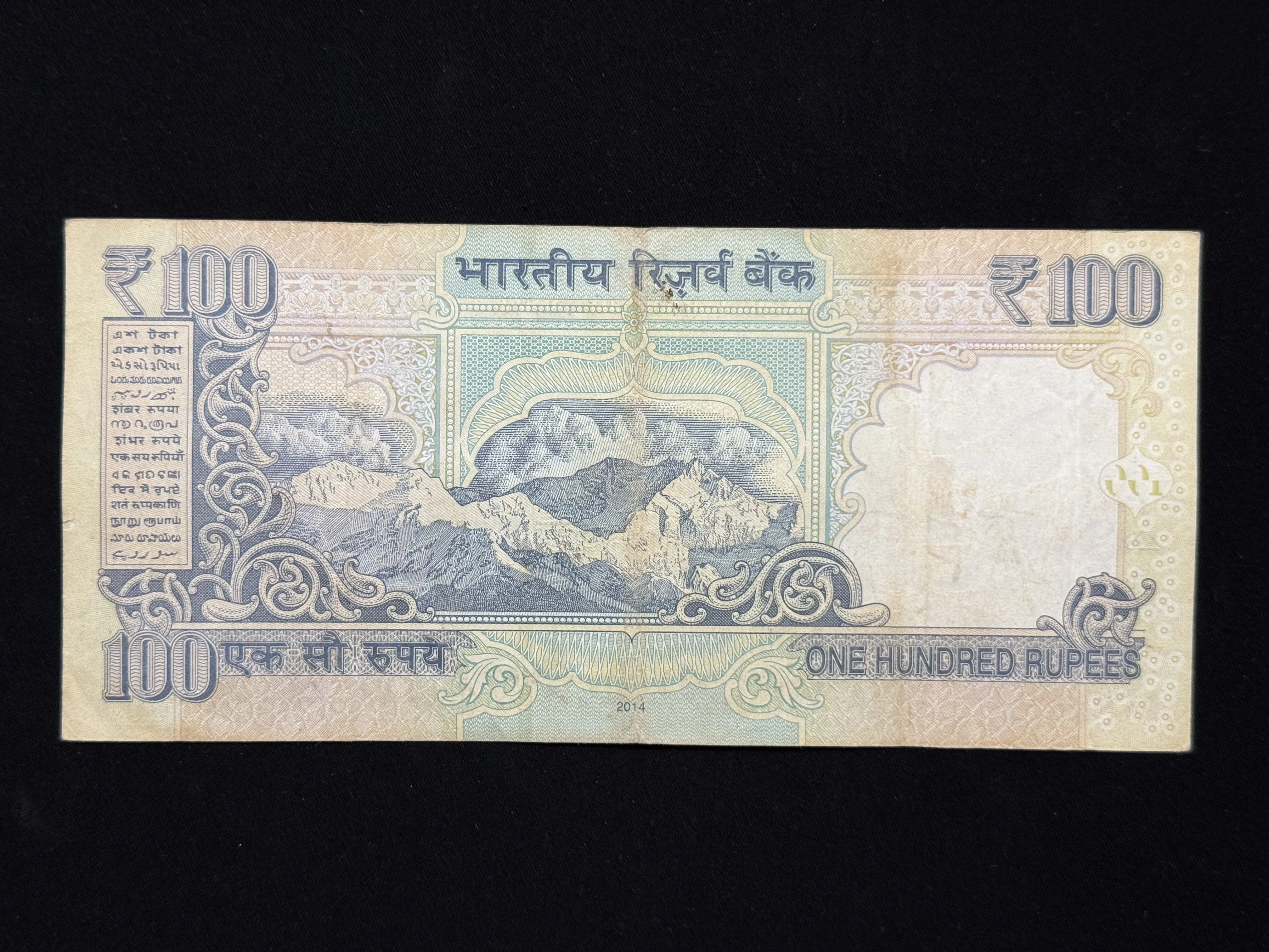India, 2014 Rupees 100 Banknote, Solid Fancy Serial Number 777777, Sign. Raghuram G. Rajan, Inset Plain, (1BV 777777)