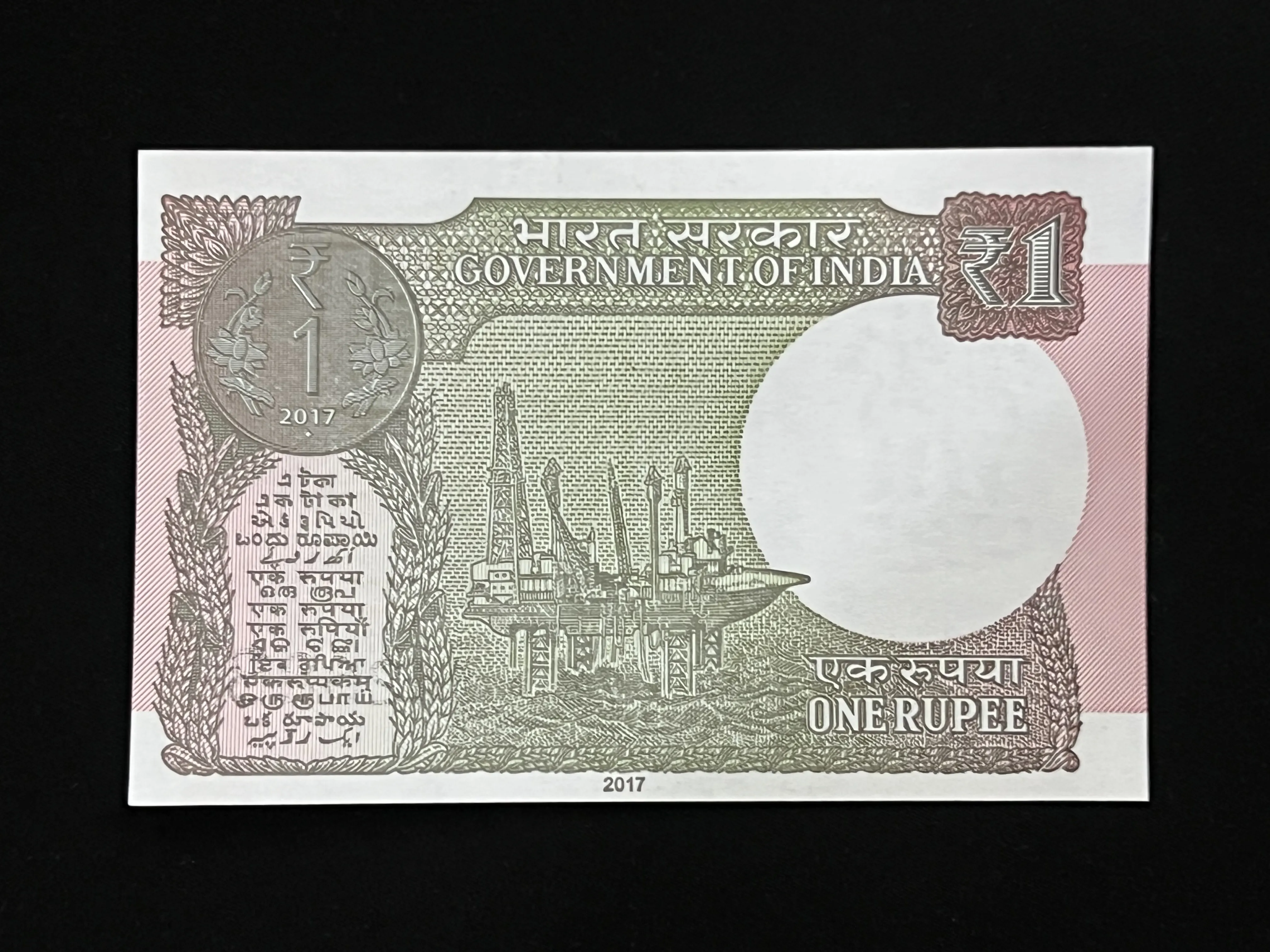 India, 2017 Rupee 1 Banknote, Holy Fancy Serial Number Ending 687 (Reverse 786), Sign. Shaktikanta Das, Inset L, UNC, (02D 262687)