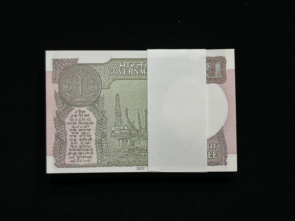 India, 2017 Rupee 1 Complete Serial Bundle of 100 Banknotes, Holy Fancy Serial Number Ending 786, Fancy Doubling Serial Number x11-x11, Sign. Shaktikanta Das, UNC