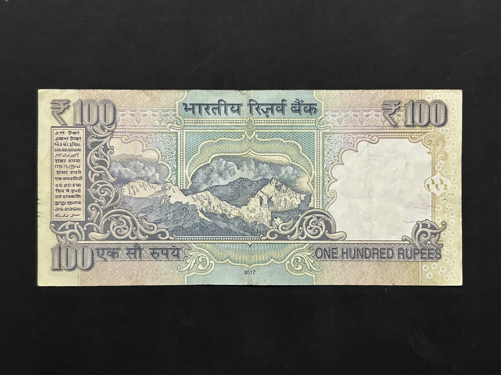 India, 2017 Rupees 100 Banknote, Misplaced Serial Number Error (Serial Number Shifting Error), Sign. Urjit R. Patel, Inset L