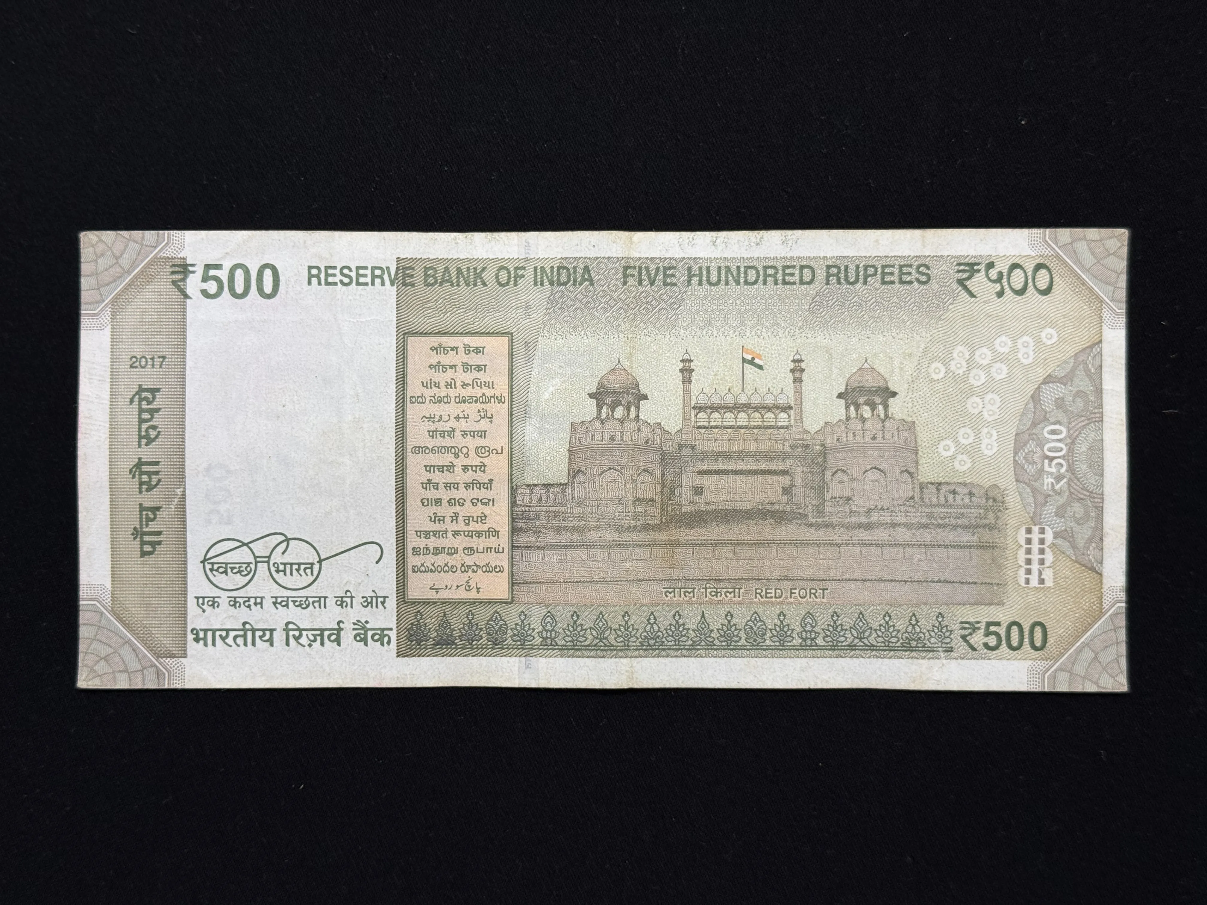 India, 2017 Rupees 500 Banknote, Fancy Serial Number 400000, Sign. Urjit R. Patel, Inset Plain, (4LT 500000)