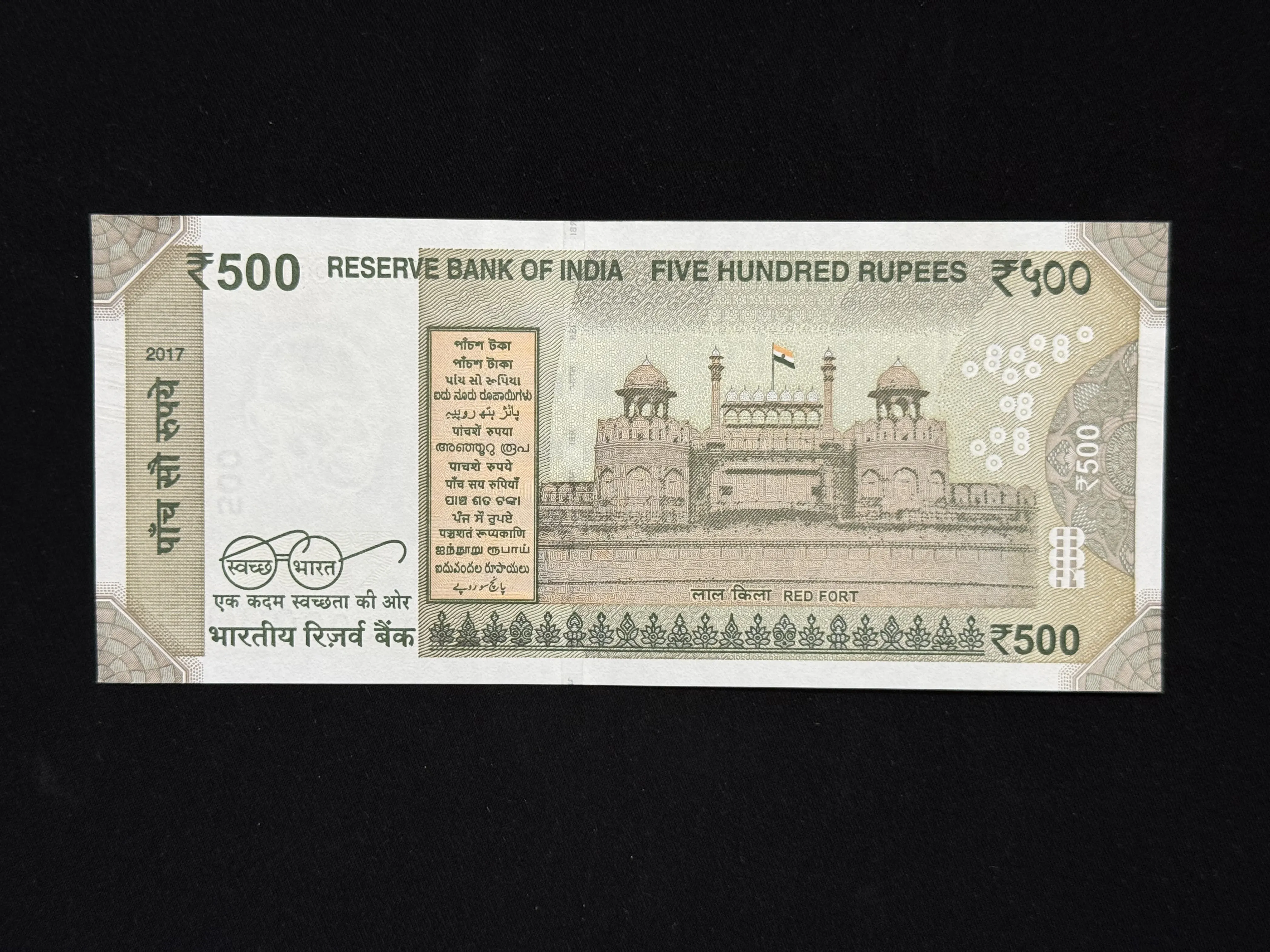 India, 2017 Rupees 500 Banknote, Fancy Serial Number 500000, Sign. Urjit R. Patel, Inset Plain, UNC, (1TQ 500000)