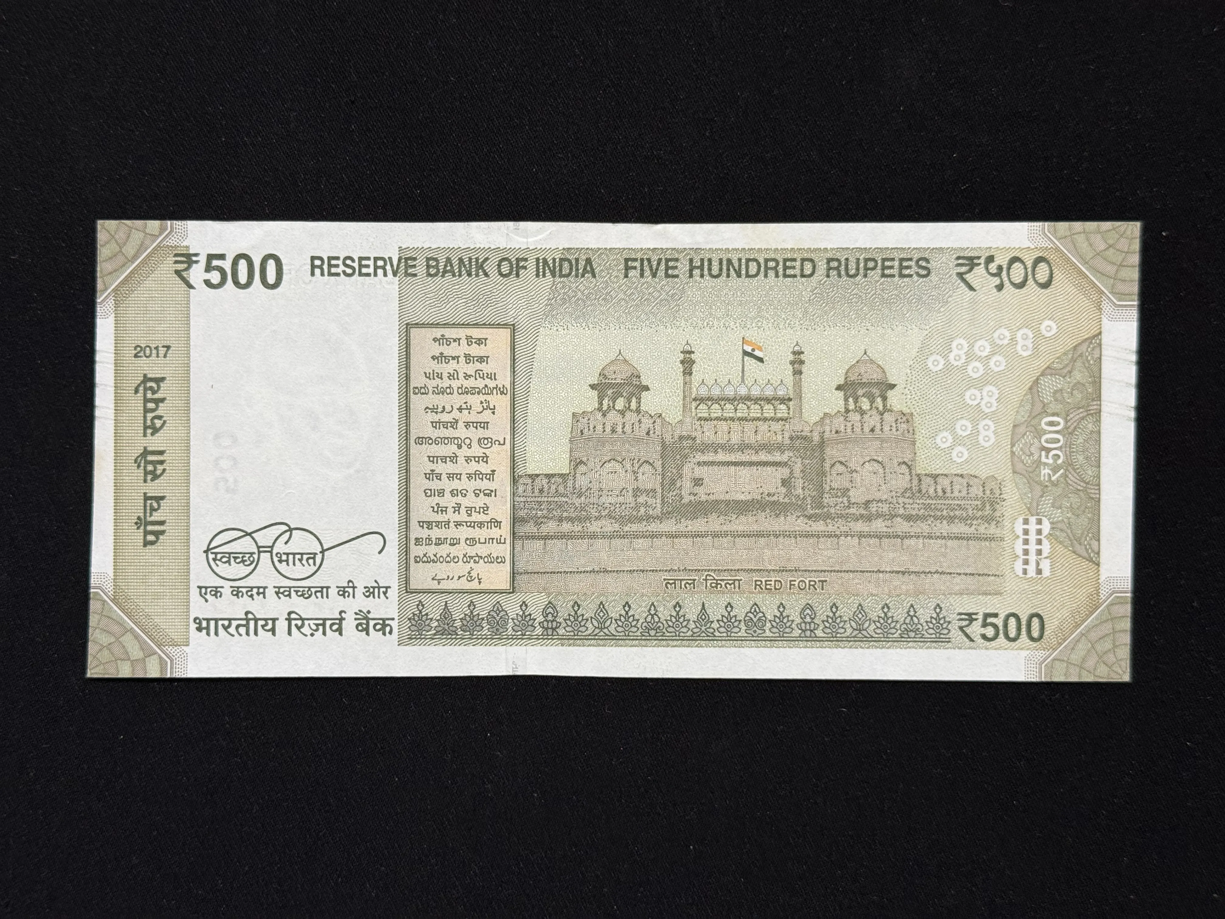 India, 2017 Rupees 500 Banknote, Solid Fancy Serial Number 333333, Sign. Urjit R. Patel, Inset L, UNC, (1PT 333333)