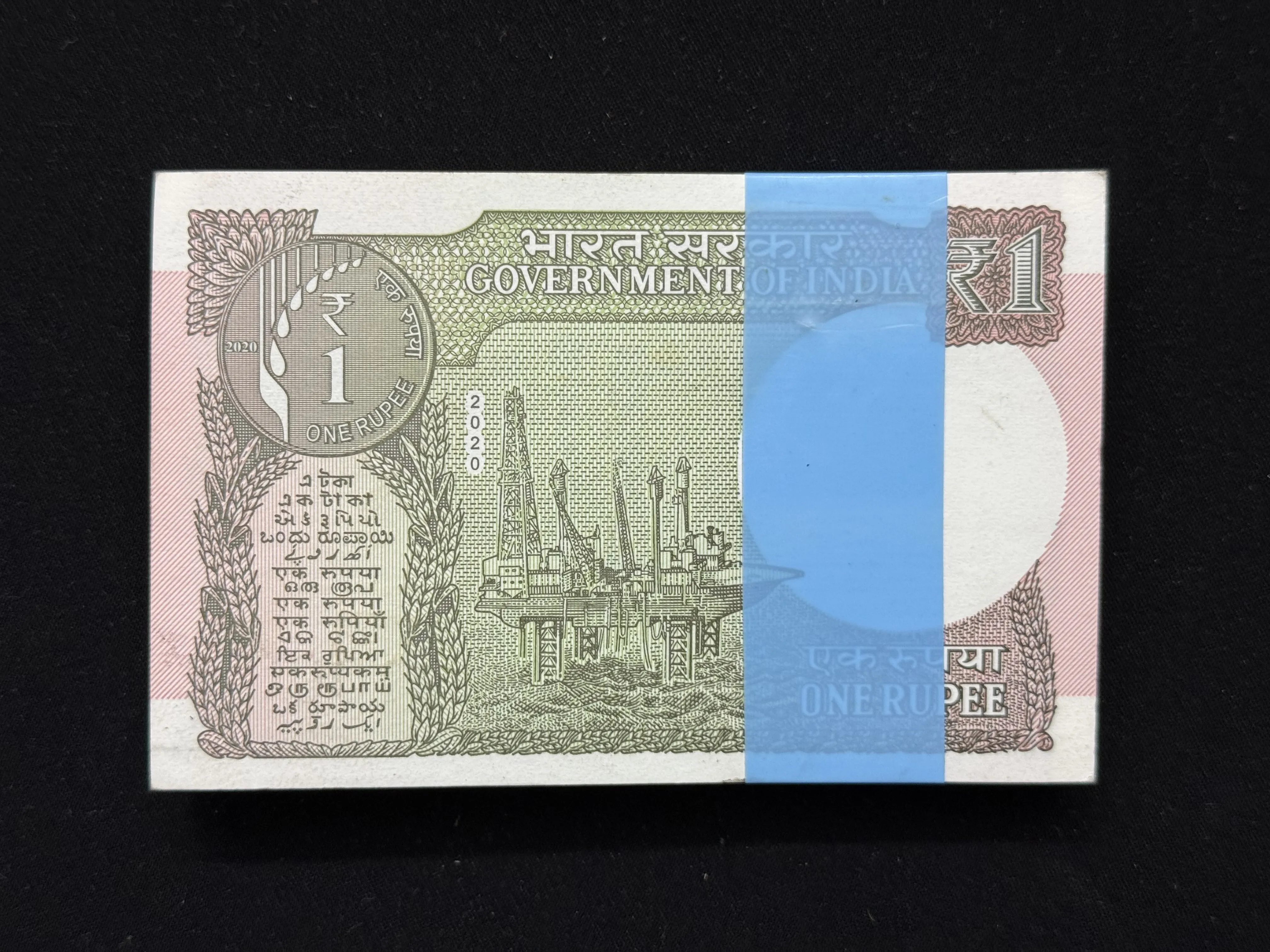India, 2020 Rupee 1 Complete Serial Bundle of 100 Notes, Holy Fancy Serial Number 541-000, Sign. Atanu Chakraborty, UNC, RARE, (10A 540901)