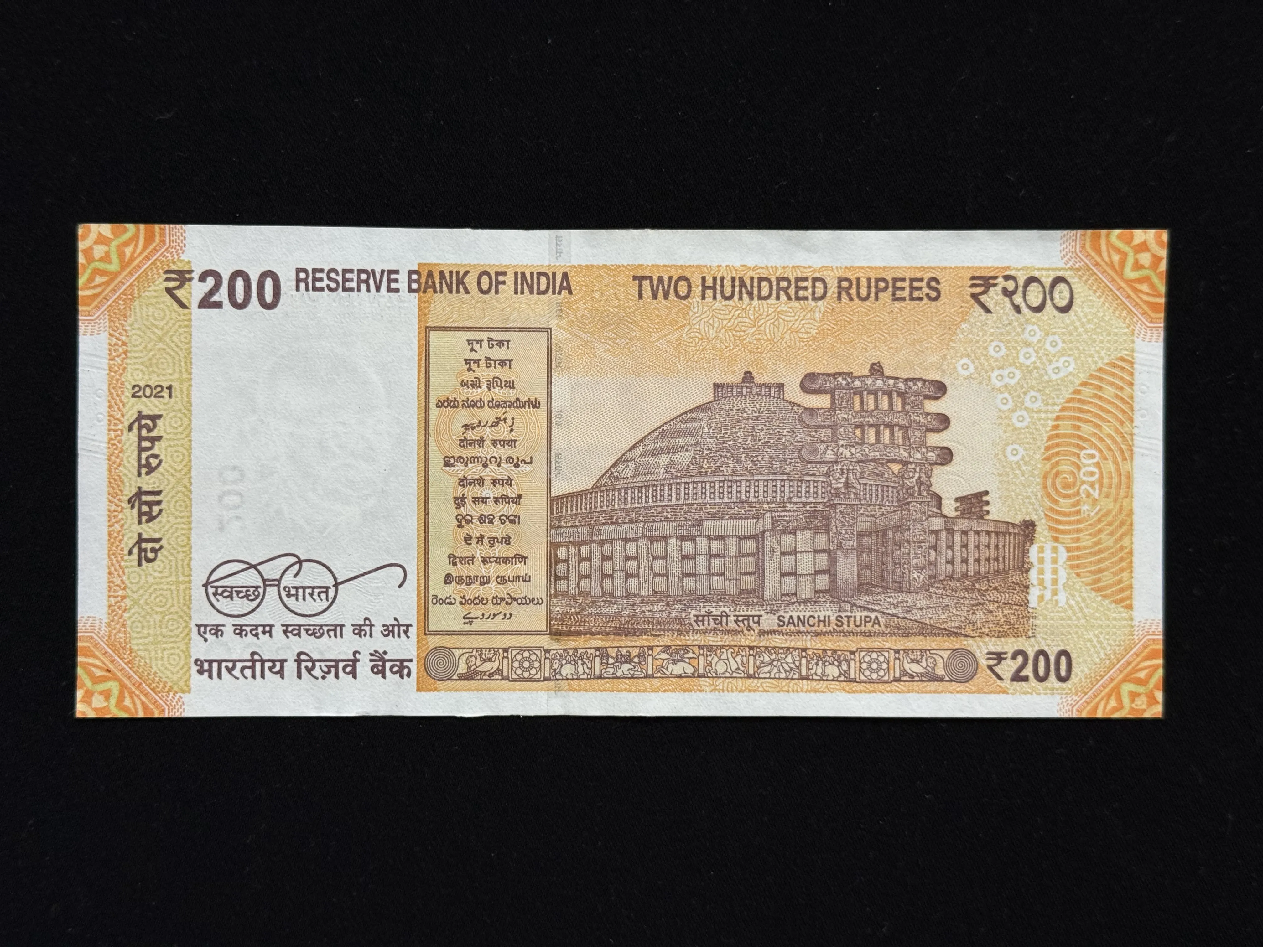 India, 2021 Rupees 200 Banknote, Fancy Serial Number 800000, Sign. Shaktikanta Das, Inset Plain, UNC, (6KC 800000)