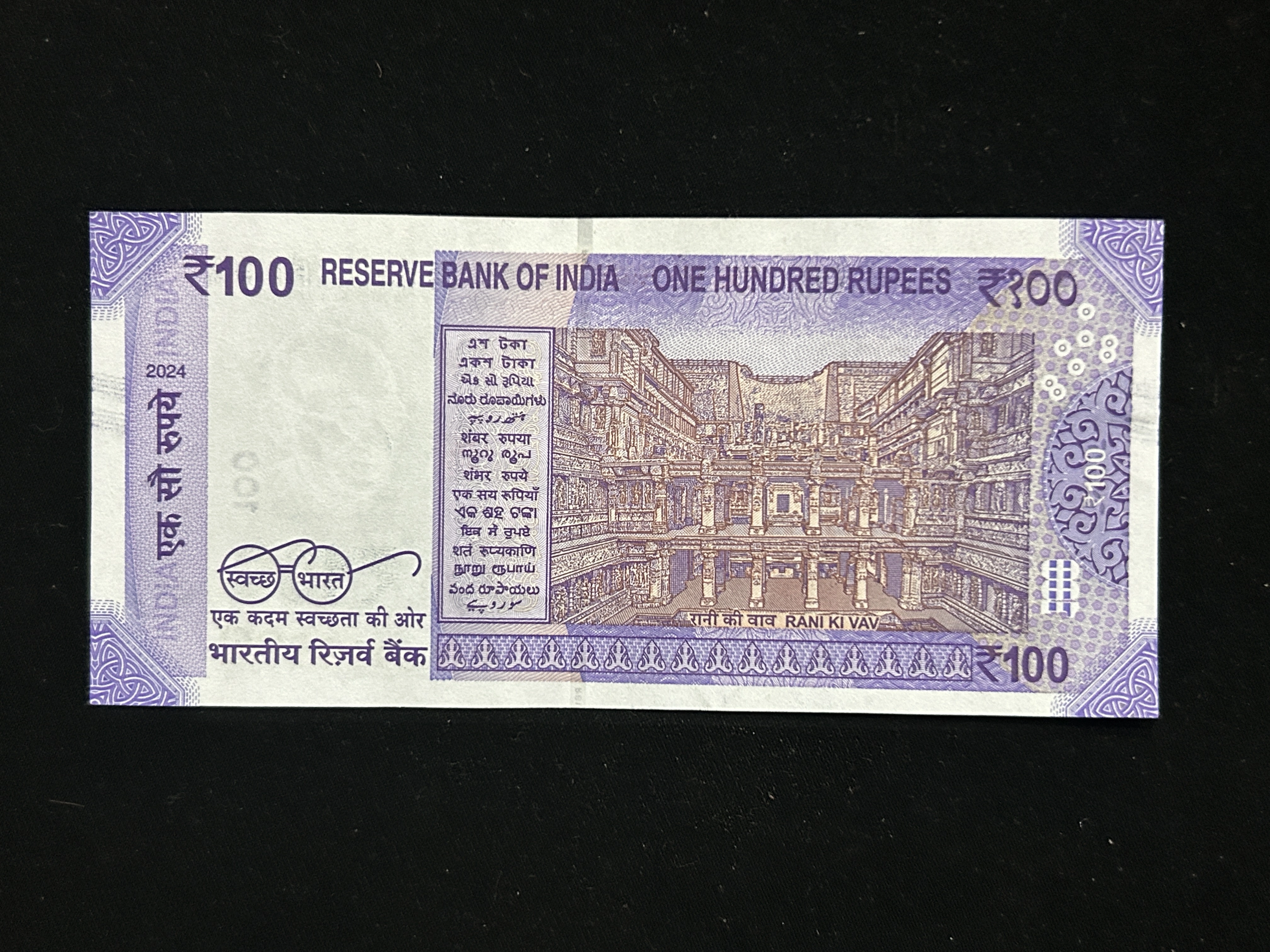 India, 2024 Rupees 100 Banknote, Solid Fancy Serial Number 999999, Sign. Shaktikanta Das, Inset N, UNC