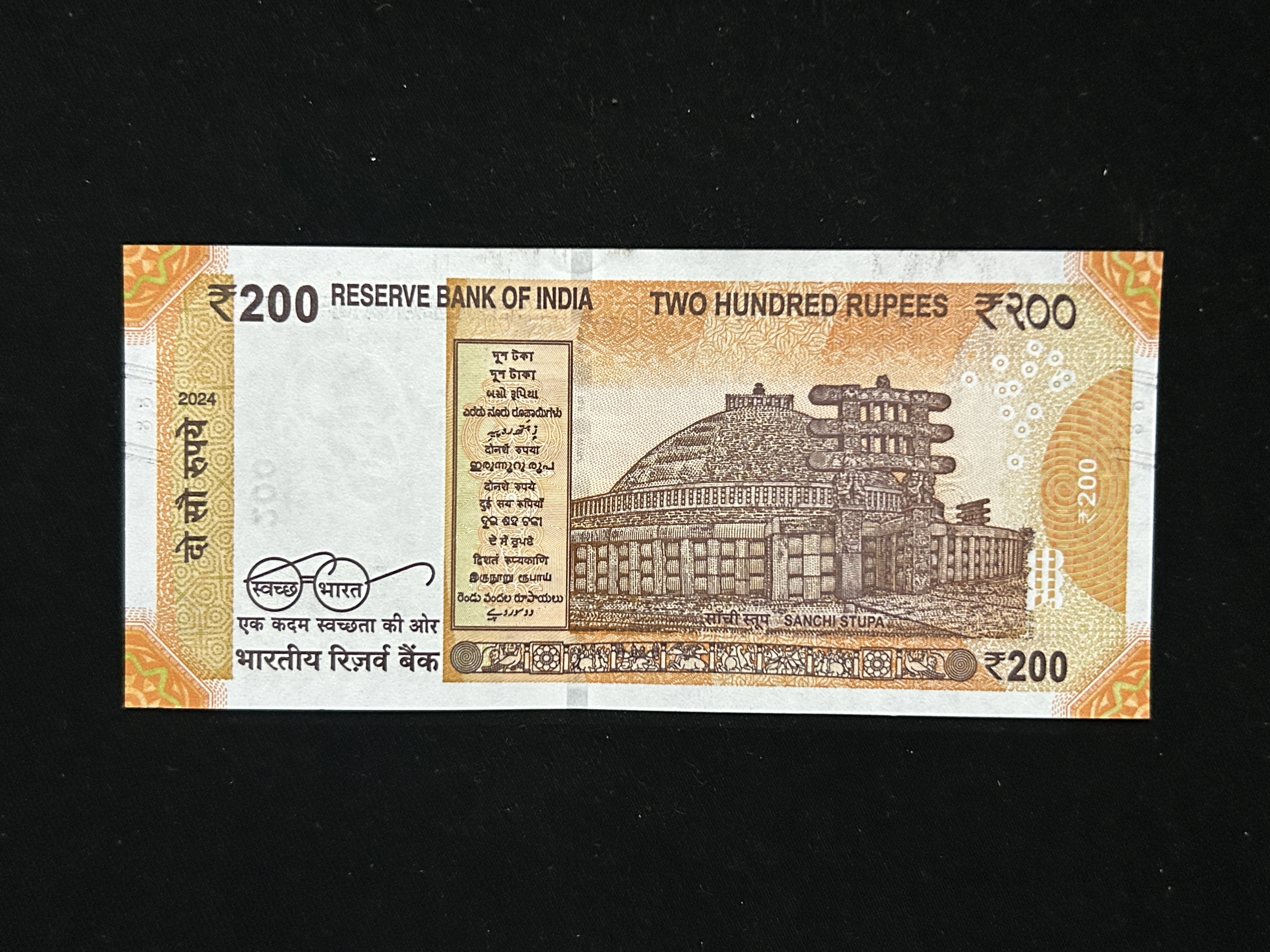 India, 2024 Rupees 200 Banknote, Super Solid Fancy Serial Number 4 - 444444, Sign. Shaktikanta Das, Inset L, UNC